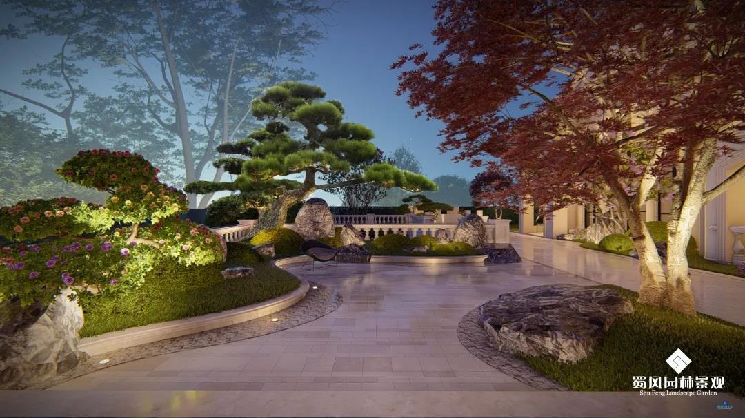 石如虎距松如龍,風云變化多靈蹤。 本次項目在原花園的基礎(chǔ)上進行升級,以大氣、禪意的自然式園林為整體基調(diào)。在棕櫚泉法式建筑的大環(huán)境中,局部改用自然曲線構(gòu)圖,增加厚重有深意